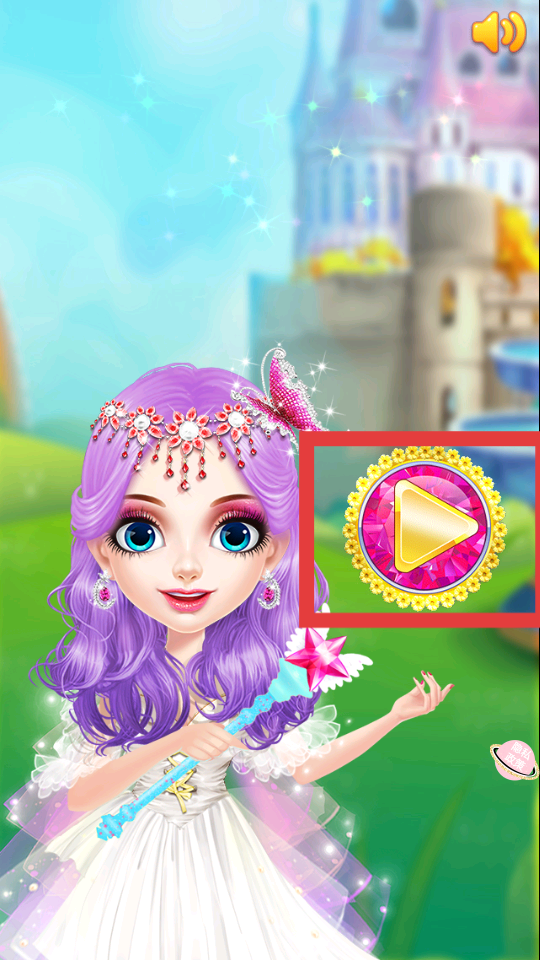 1、玩家下載游戲之后然后點(diǎn)擊進(jìn)入在游戲主界面,點(diǎn)擊帶有播放標(biāo)識(shí)的按鈕,進(jìn)入公主化妝換裝的游戲環(huán)節(jié)。