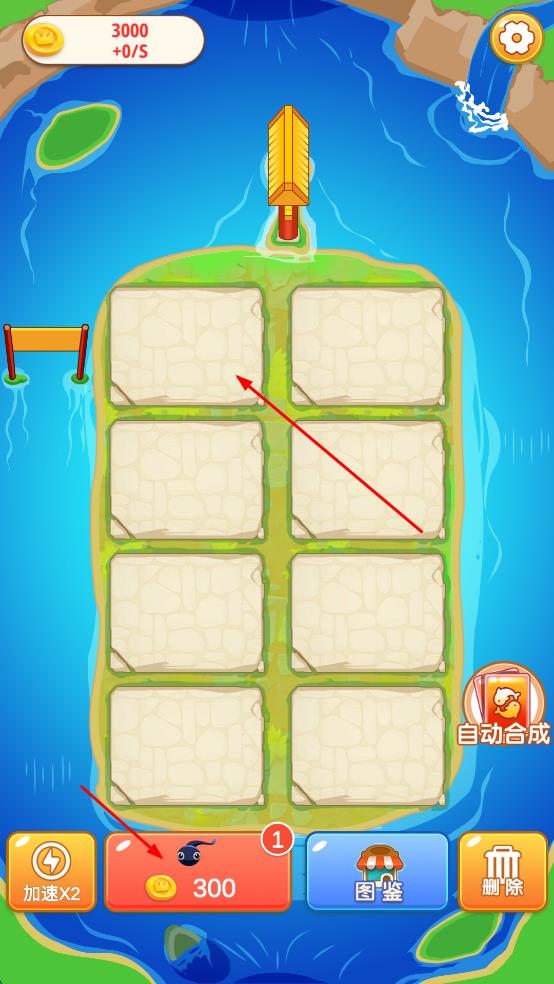 1、點(diǎn)擊底部標(biāo)有300金幣的按鈕,將生物放置到空地格子,開啟基礎(chǔ)賺錢流程,積累初始金幣資源。