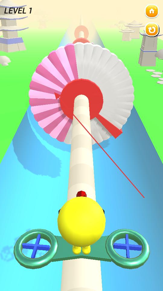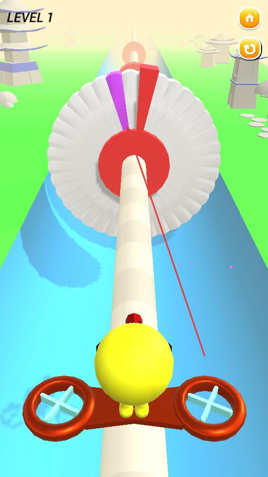2、操控角色在螺旋賽道上飛行,注意避開(kāi)前方旋轉(zhuǎn)圓盤(pán)的紅色阻礙區(qū)域,開(kāi)始射擊。
