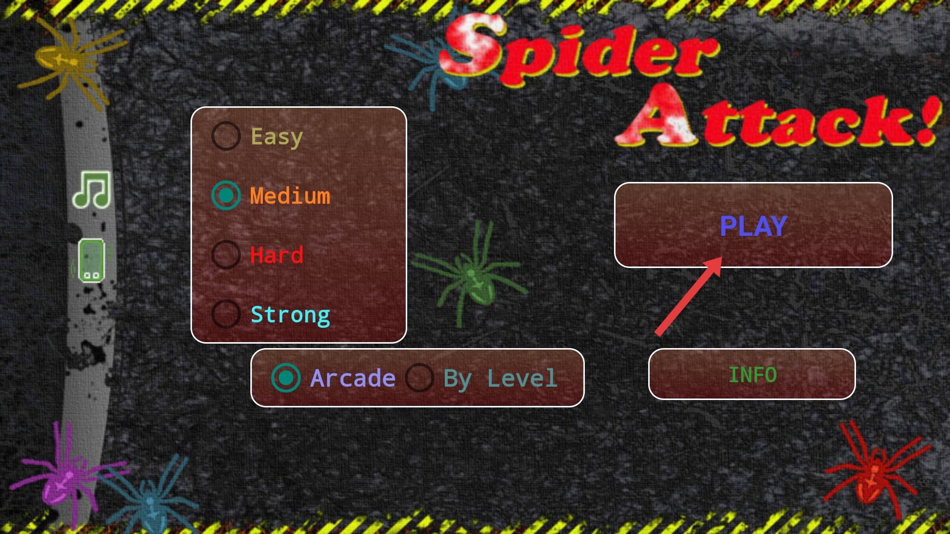 1、在游戲選擇界面,可挑選難度,有Easy、Medium等選項(xiàng),還能選Arcade模式,選好后點(diǎn)擊PLAY按鈕,即可進(jìn)入游戲。