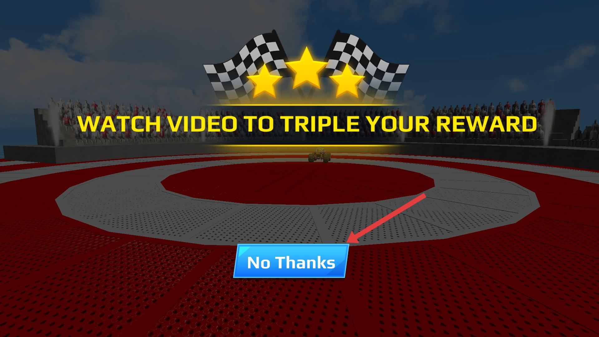 4、成功完成賽道行駛等任務后,會出現獎勵提示,若不想觀看視頻來獲取三倍獎勵,可點擊拒絕按鈕,直接領取當前的獎勵。