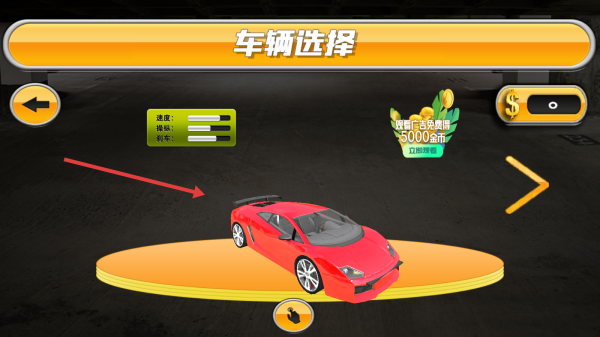 2、進(jìn)入車(chē)輛選擇界面后,可以瀏覽不同款式的賽車(chē),每輛賽車(chē)在速度等方面存在差異,可根據(jù)關(guān)卡需求和個(gè)人喜好選擇合適的賽車(chē)。