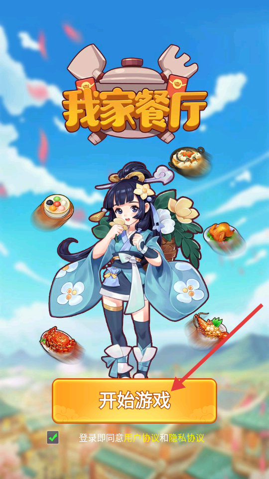 1、游戲初始界面有開始游戲按鈕,玩家可以點擊該按鈕,即可進(jìn)入我家餐廳游戲,開啟餐廳經(jīng)營之旅。