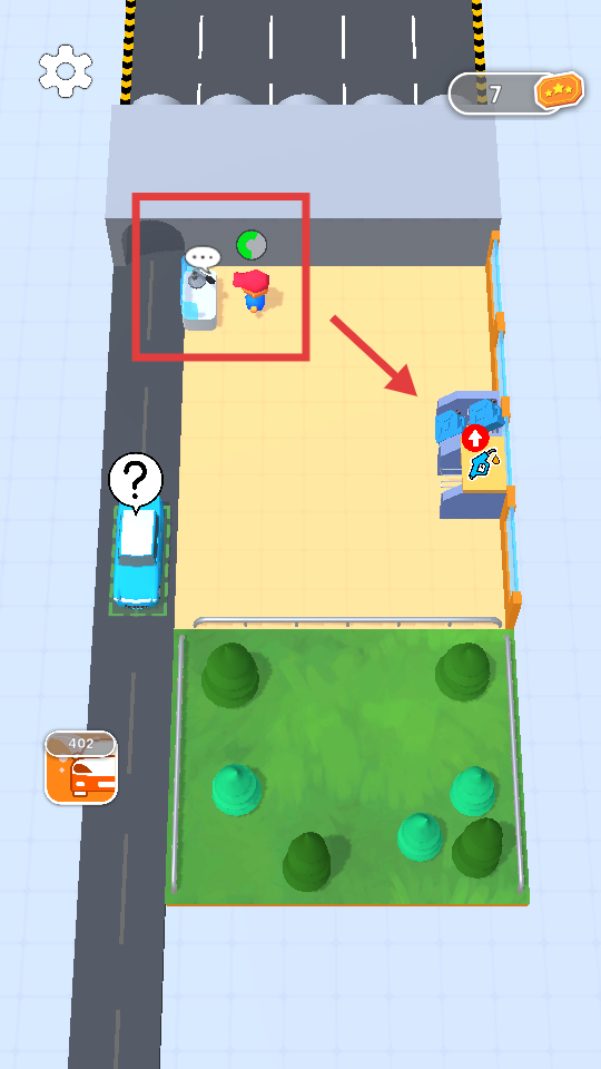 2、游戲中會遇到有對話氣泡的角色,靠近并與他們互動,同時(shí)留意帶有紅色箭頭提示的機(jī)器,操作這些機(jī)器可獲取洗車相關(guān)的工具或任務(wù)。