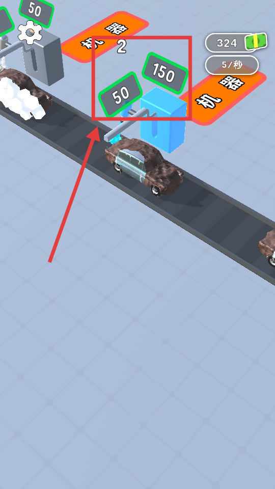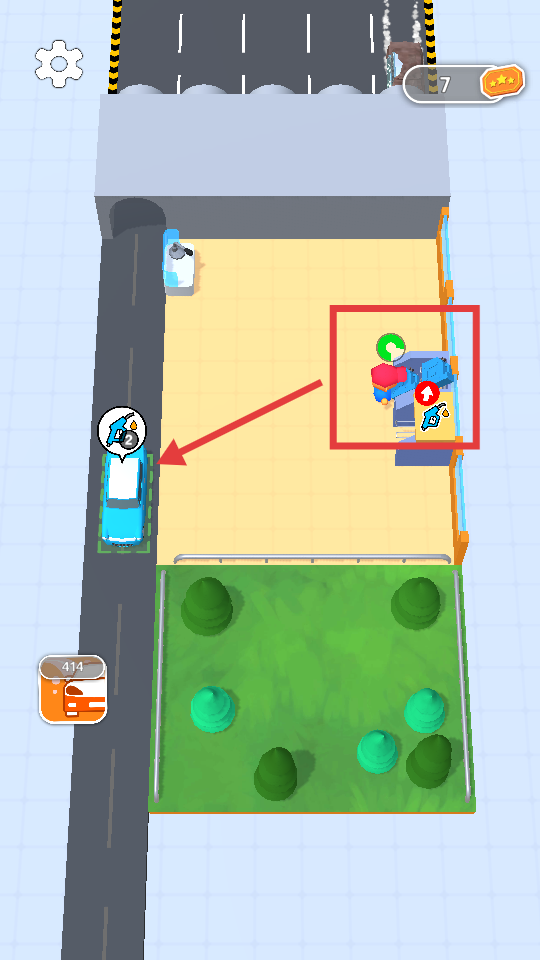 3、當(dāng)車輛出現(xiàn)工具需求標(biāo)識時(shí),前往帶有紅色箭頭提示的機(jī)器處,獲取對應(yīng)的工具,然后回到車輛旁,使用工具滿足車輛的需求推進(jìn)洗車工作。