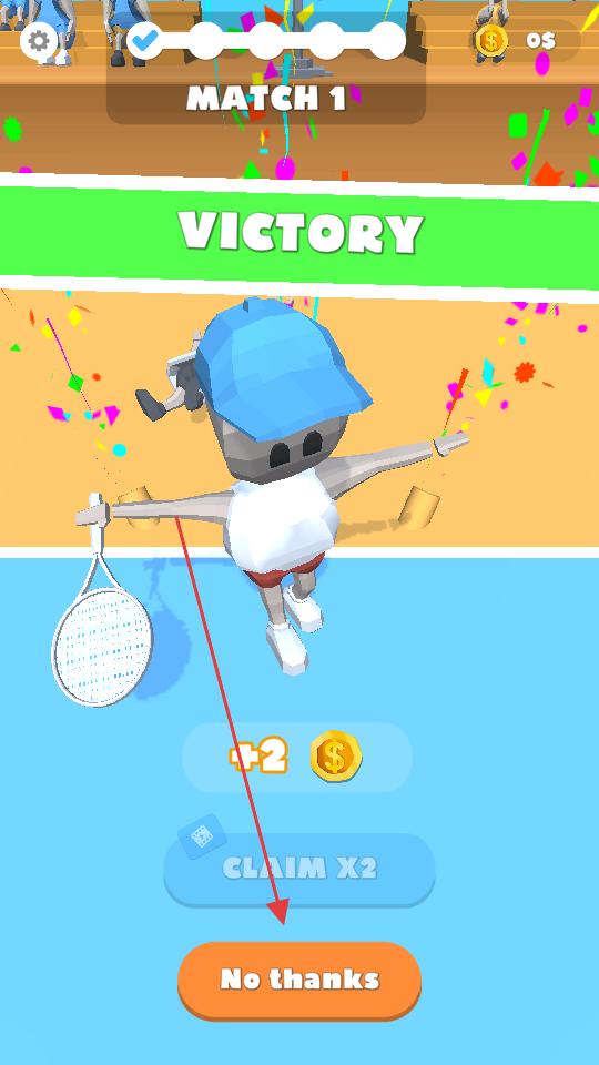 4、成功擊敗對手后界面顯示勝利提示和獲得的金幣獎(jiǎng)勵(lì),點(diǎn)擊no按鈕結(jié)束當(dāng)前關(guān)卡,準(zhǔn)備進(jìn)入下一場繼續(xù)挑戰(zhàn)新的對手。