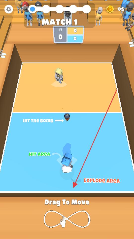 1、基礎(chǔ)擊球操作:通過滑動(dòng)控制揮拍方向與力度,長按蓄力可觸發(fā)特殊旋轉(zhuǎn)球,注意保持合理站位應(yīng)對不同爆炸范圍的網(wǎng)球攻擊。