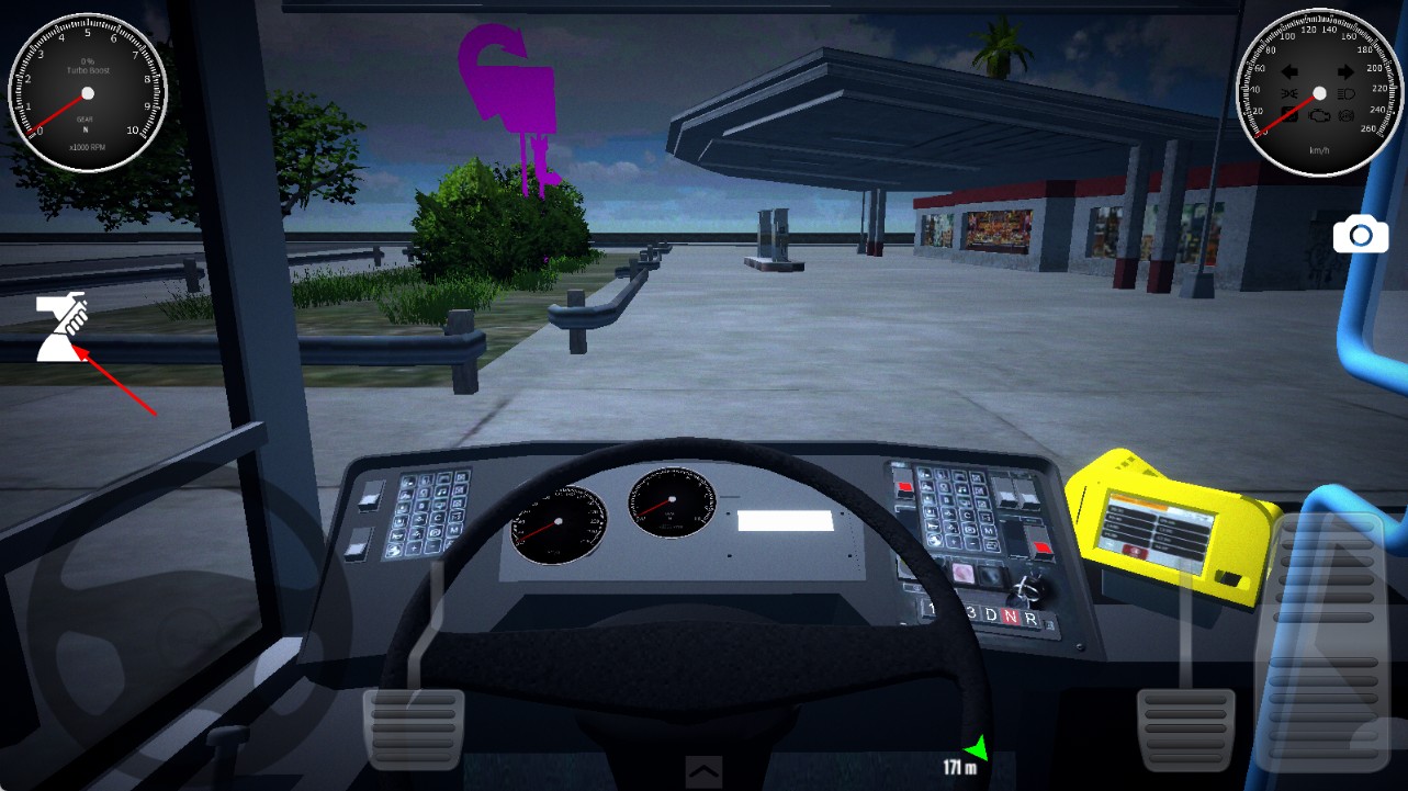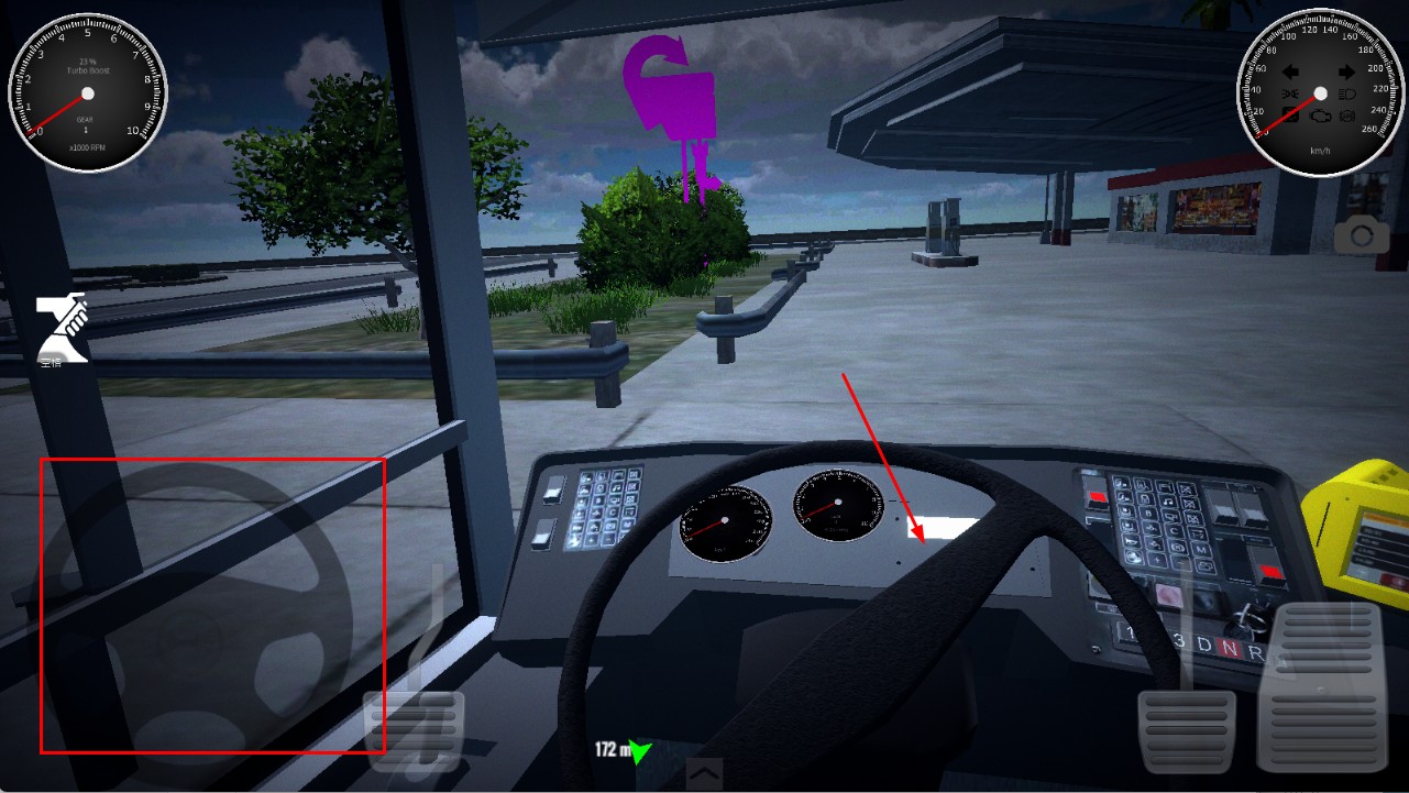 2、在巴士駕駛場景,可看到車內(nèi)左上角的的手剎設(shè)備,通過點(diǎn)擊操作設(shè)備,能操控巴士啟動(dòng)準(zhǔn)備出發(fā)。