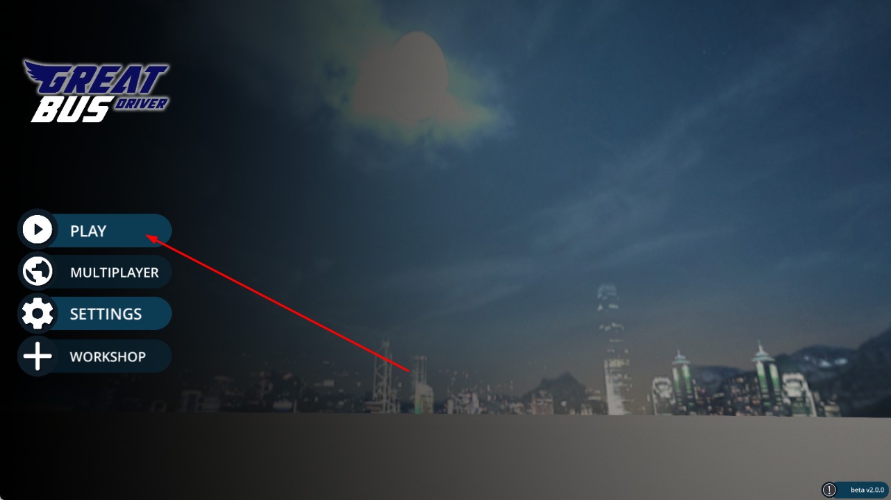 1、進(jìn)入游戲會(huì)看到帶有城市夜景的啟動(dòng)界面,點(diǎn)擊PLAY按鈕,即可開啟巴士駕駛挑戰(zhàn),體驗(yàn)駕駛樂趣。
