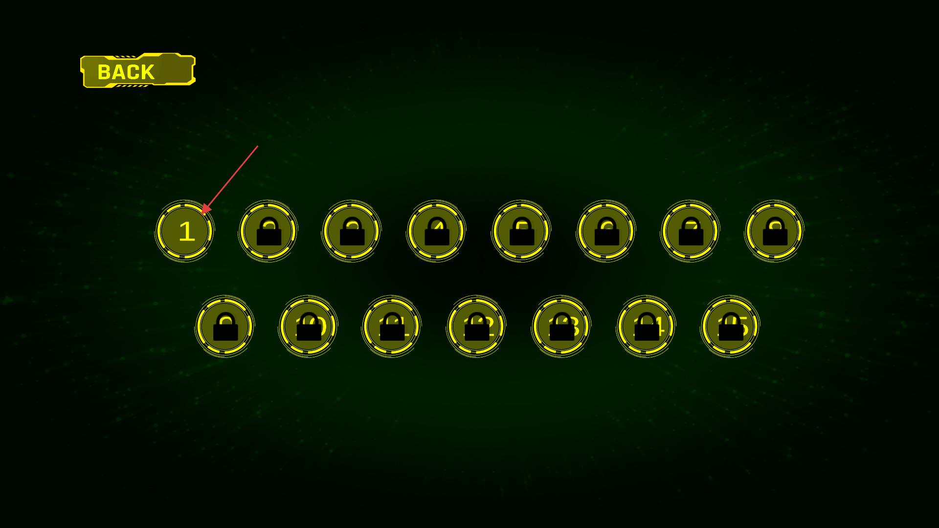 1、打開(kāi)游戲后,進(jìn)入主界面,界面上有開(kāi)始、武器、設(shè)置等多個(gè)選項(xiàng),點(diǎn)擊開(kāi)始按鈕,隨即進(jìn)入關(guān)卡選擇界面,可在其中挑選想要挑戰(zhàn)的關(guān)卡。