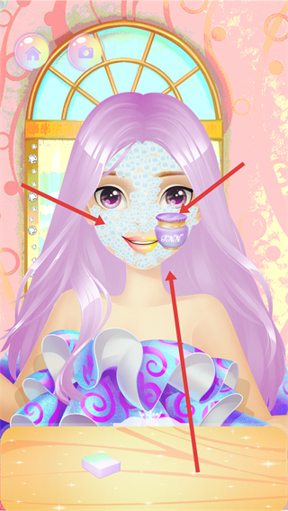 3、使用面膜類物品,涂抹在公主臉部,給臉部做護理,讓臉部肌膚呈現(xiàn)更好狀態(tài)。