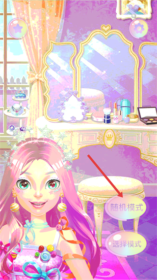 1、可選擇隨機模式或選擇模式,進入美妝界面,準(zhǔn)備為公主進行洗漱美妝打扮。