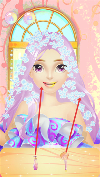 4、進行頭發(fā)護理,使用工具產(chǎn)生泡沫等,對公主的頭發(fā)進行清潔、打理,讓頭發(fā)更美觀。