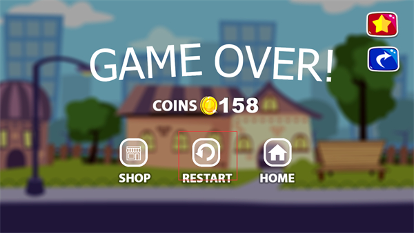 4、如果車輛在行駛過程中出現(xiàn)失誤導(dǎo)致游戲結(jié)束,會(huì)顯示GAME OVER界面,此時(shí)可以點(diǎn)擊RESTART按鈕重新開始挑戰(zhàn)。