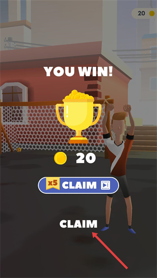 4、成功射入球門(mén)后,會(huì)顯示你贏了,還有獎(jiǎng)杯和金幣獎(jiǎng)勵(lì),點(diǎn)擊CLAIM領(lǐng)取獎(jiǎng)勵(lì),之后可繼續(xù)挑戰(zhàn)新關(guān)卡。