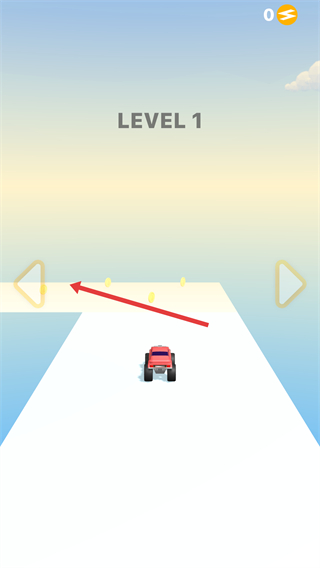 2、在行駛的過程,操控紅色卡車在道路上移動(dòng),道路上有小金幣,需控制卡車去收集這些物件。