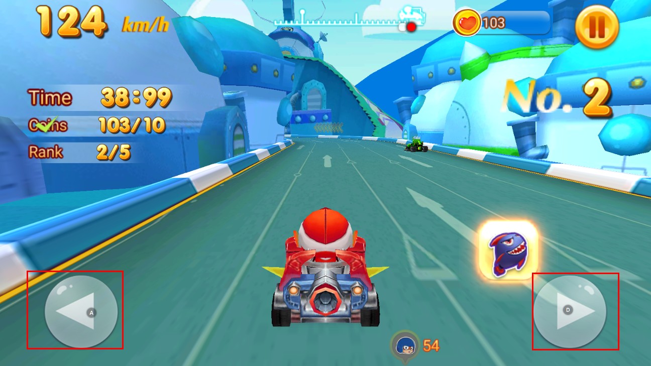 3、在賽車行駛過程,通過點擊左側或右側的方向按鈕,可控制賽車左右移動,躲避障礙、超越對手,提升比賽排名。
