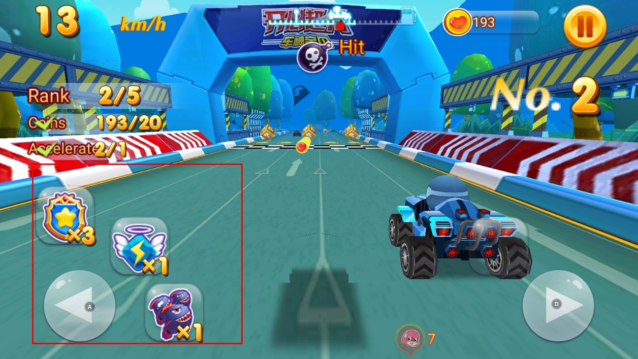 4、比賽時左側會出現(xiàn)道具圖標,點擊這些圖標可使用相應道具,如加速道具能提升賽車速度,助力在比賽取得更好成績。