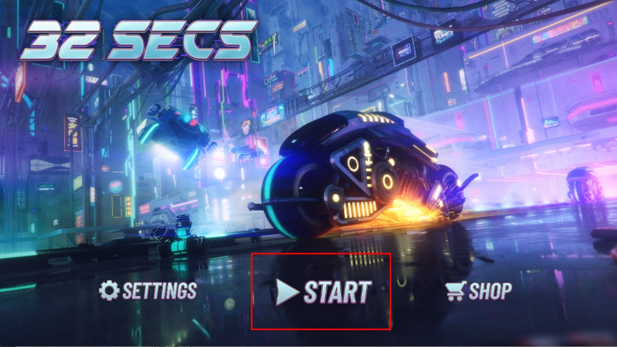 1、進(jìn)入游戲主界面,看到賽博朋克風(fēng)格的場(chǎng)景和炫酷摩托,點(diǎn)擊中間START按鈕,即可開啟摩托競(jìng)速挑戰(zhàn)。
