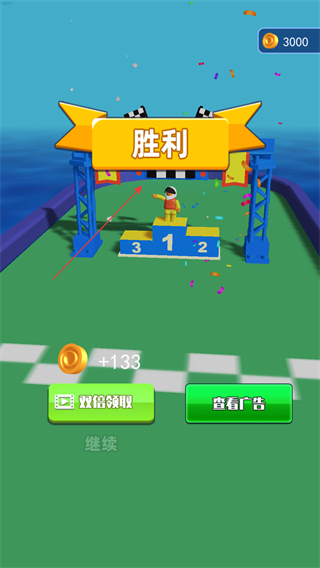 4、成功避開賽道上的所有障礙并收集金幣后,駕駛賽車沖過終點線,若在比賽中表現(xiàn)出色率先沖線,即可獲得勝利領(lǐng)取金幣獎勵。