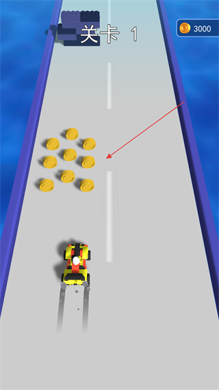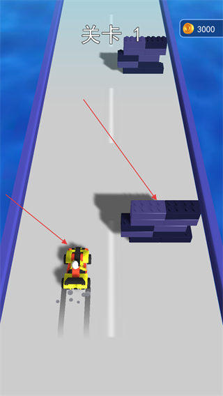 2、在賽車行駛過程中密切關(guān)注前方出現(xiàn)的積木等障礙物,通過滑動屏幕或點擊對應(yīng)操作按鈕,控制賽車左右移動躲避障礙物。