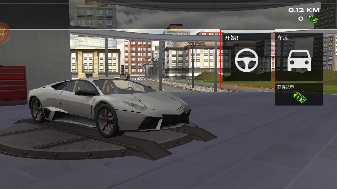 1、進(jìn)入游戲會看到停著跑車的初始界面,點擊帶有方向盤圖標(biāo)的開始按鈕,即可開啟城市駕駛之旅。