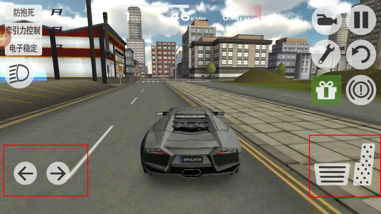 3、在駕駛過程,通過左側(cè)左右箭頭按鈕控制車輛轉(zhuǎn)向,右側(cè)相關(guān)按鈕控制油門和剎車,操控車輛行駛。