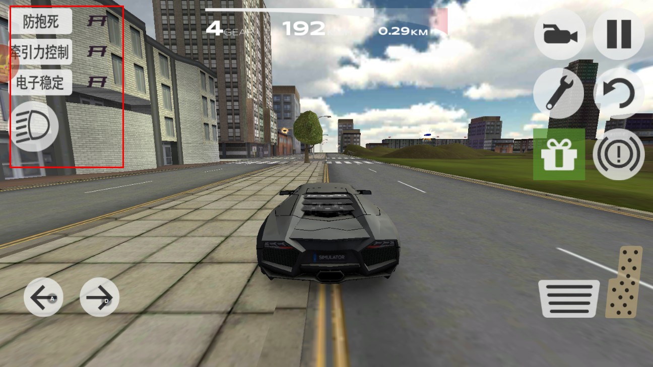 4、還能根據(jù)需求,點擊左側(cè)防抱死、牽引力控制、電子穩(wěn)定等功能按鈕,開啟對應(yīng)功能,提升駕駛體驗。