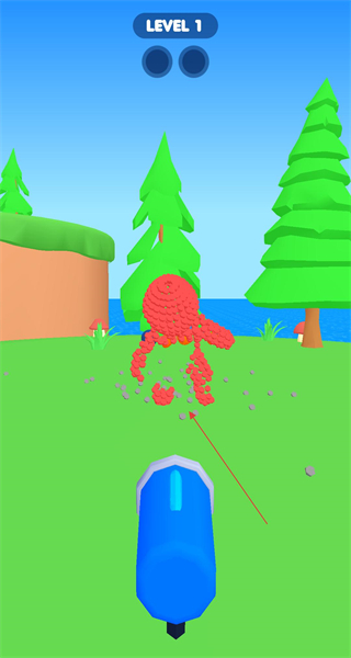 4、解壓核心玩法:將所有不開心像敵人發(fā)射出去,被射爆后看到滿地的球球,這種簡單的物理效果設(shè)計成為游戲解壓的核心機(jī)制。