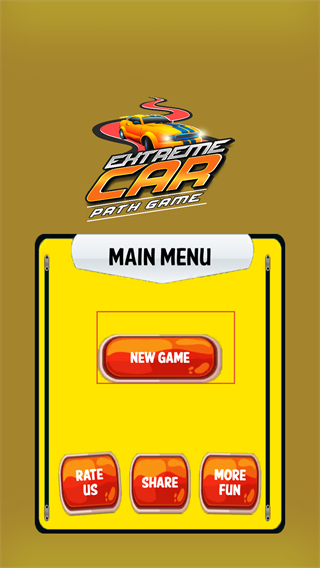 1、玩家下載游戲之后然后點擊進入在游戲主界面,點擊NEW GAME按鈕進入游戲關卡,開始極限賽車迷宮的挑戰(zhàn)。