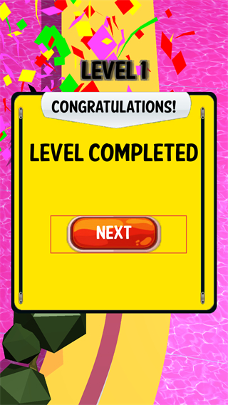 4、成功駕駛賽車通過迷宮賽道,抵達終點后,會顯示LEVEL COMPLETED的提示,點擊圖標的按鈕進入下一個關卡。