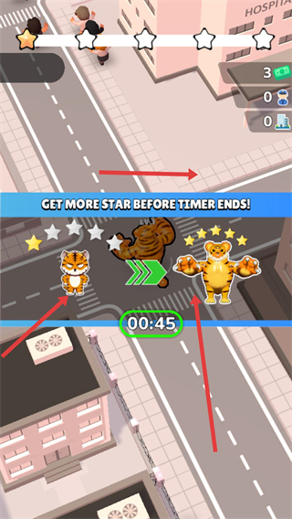 2、孵化出怪獸后,要在計(jì)時(shí)器結(jié)束前獲取更多星星,讓怪獸從初始形態(tài)成長(zhǎng)為更強(qiáng)大的形態(tài),提升破壞能力。
