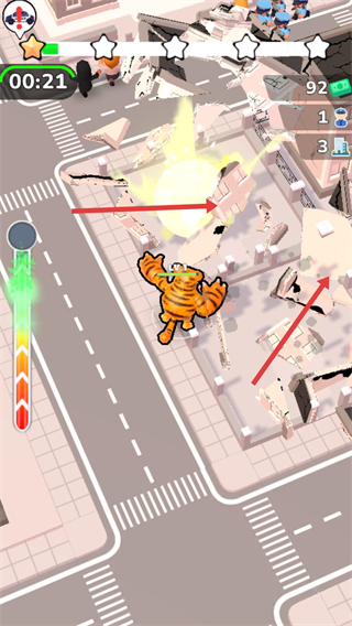 4、接著操控怪獸對(duì)城市建筑進(jìn)行破壞,摧毀房屋等建筑,在規(guī)定時(shí)間內(nèi)盡可能造成更多破壞,獲取更高分?jǐn)?shù)。
