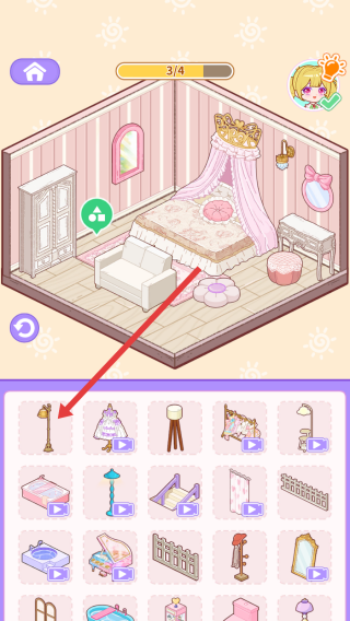 3、接著從裝飾選項(xiàng)中選擇臺(tái)燈等物品,繼續(xù)為房間增添裝飾,讓房間更豐富美觀。