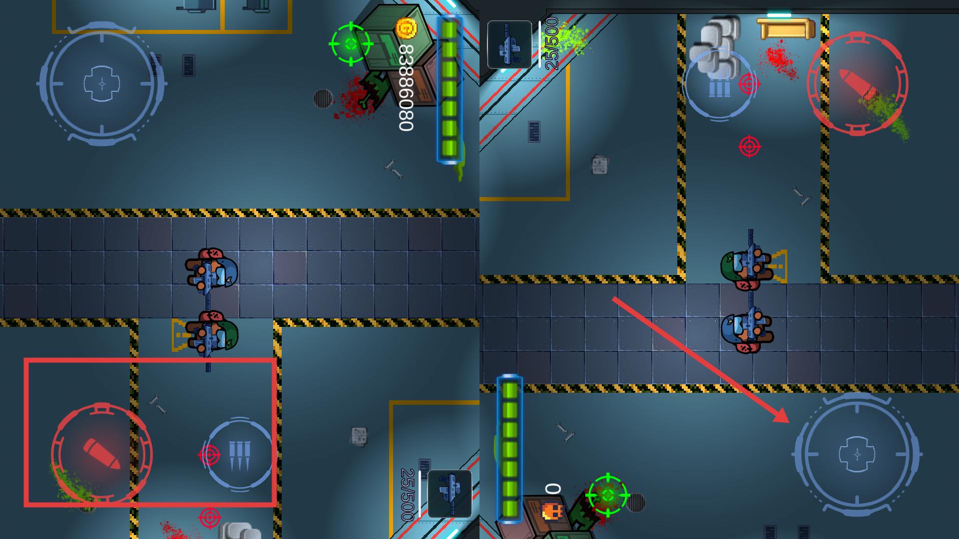 3、進入游戲場景后操控角色移動,利用屏幕上的虛擬按鍵,瞄準出現(xiàn)的僵尸,發(fā)射武器進行射擊,同時注意躲避僵尸的攻擊。