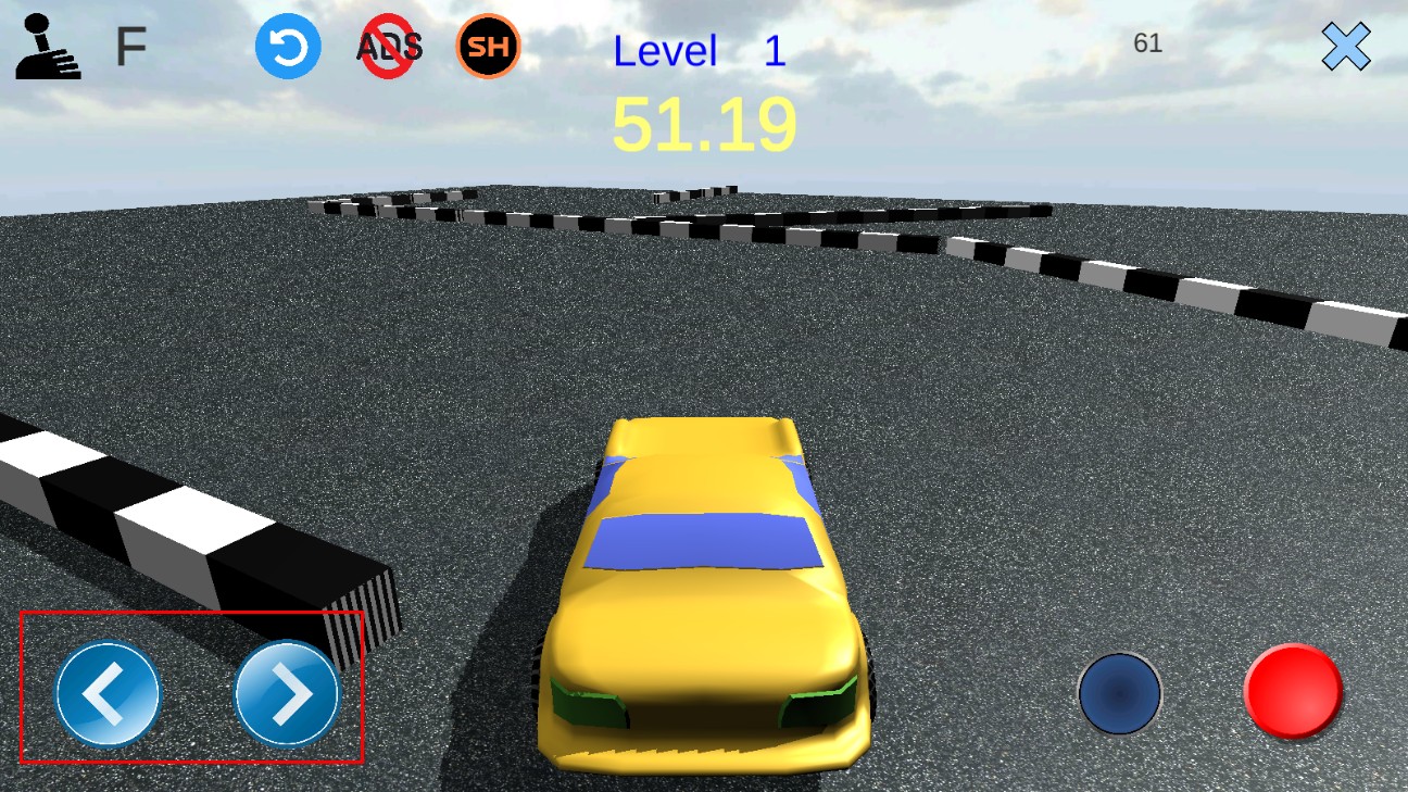 3、遇到彎道時,操作左側(cè)左右方向按鈕,調(diào)整賽車行駛方向,順利過彎,保持賽車在賽道內(nèi)行駛。