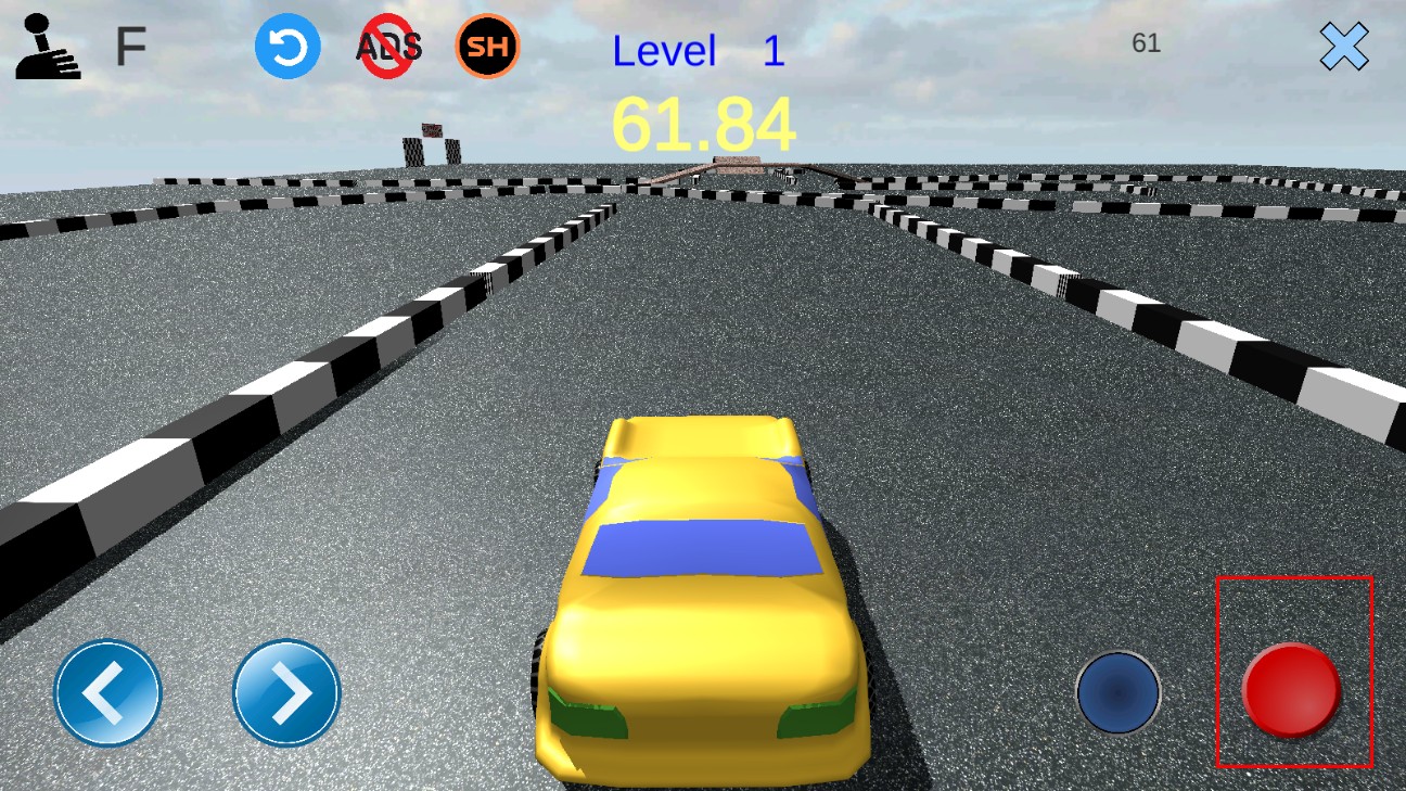 2、在賽道行駛時,點擊右側(cè)紅色按鈕,可控制賽車加速,提升行駛速度,朝著終點奮進(jìn)。