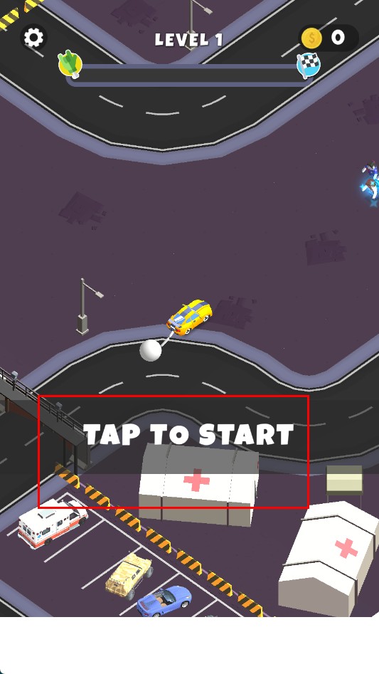 1、進(jìn)入游戲后,看到顯示TAP TO START的界面,點擊屏幕就能啟動汽車,開啟第一關(guān)的撞擊挑戰(zhàn)。