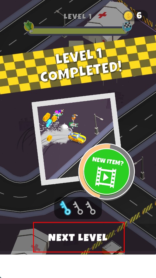 4、在關(guān)卡完成界面,點擊NEXT LEVEL按鈕,即可進(jìn)入下一關(guān),繼續(xù)進(jìn)行汽車撞擊挑戰(zhàn),體驗更多關(guān)卡。