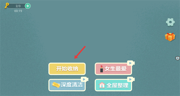 1、玩家在主界面選開始收納,點(diǎn)擊進(jìn)入關(guān)卡列表,即可準(zhǔn)備開啟一場(chǎng)有趣的收納整理放松自我的旅程。
