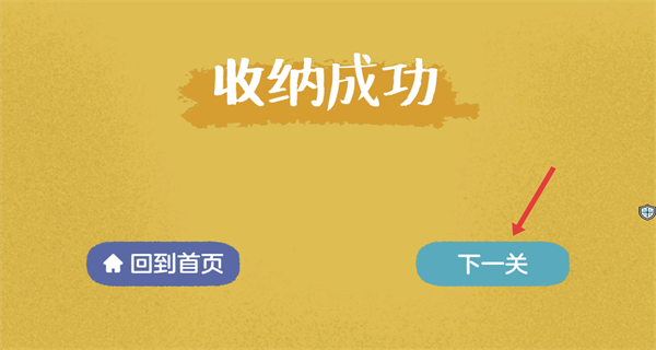 4、收納成功后,選下一關(guān)挑戰(zhàn)新關(guān)卡,或點(diǎn)回到首頁(yè)換模式,總結(jié)本關(guān)技巧,為解鎖下一關(guān)卡等內(nèi)容積累經(jīng)驗(yàn)提升收納效率。