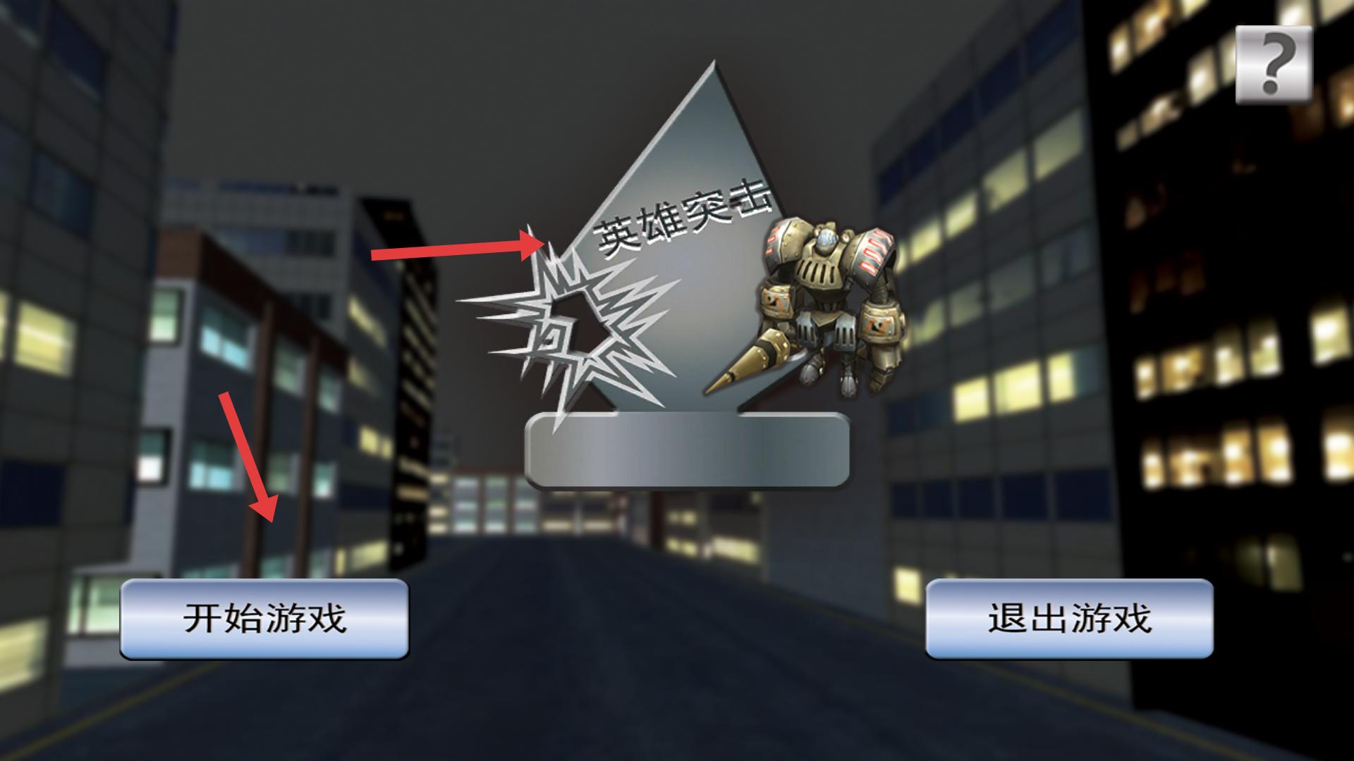 1、進入游戲,看到英雄突擊標題,點擊開始游戲,開啟在城市里的戰(zhàn)斗冒險,感受刺激的戰(zhàn)斗氛圍。
