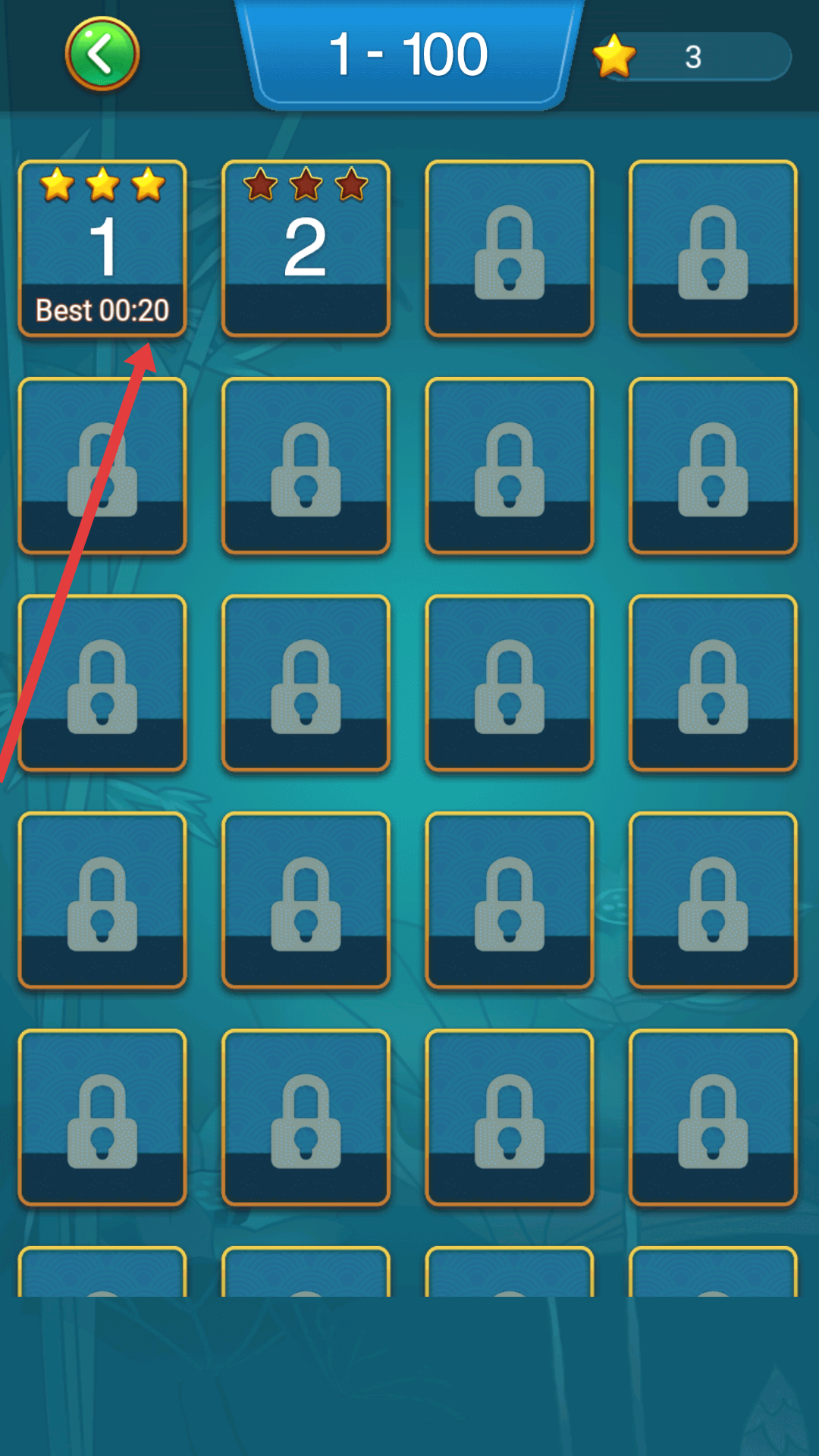 1、點擊開始游戲按鈕,進入關(guān)卡選擇界面,這里能看到不同的關(guān)卡,選擇想要挑戰(zhàn)的關(guān)卡,開啟麻將連連看的挑戰(zhàn)。