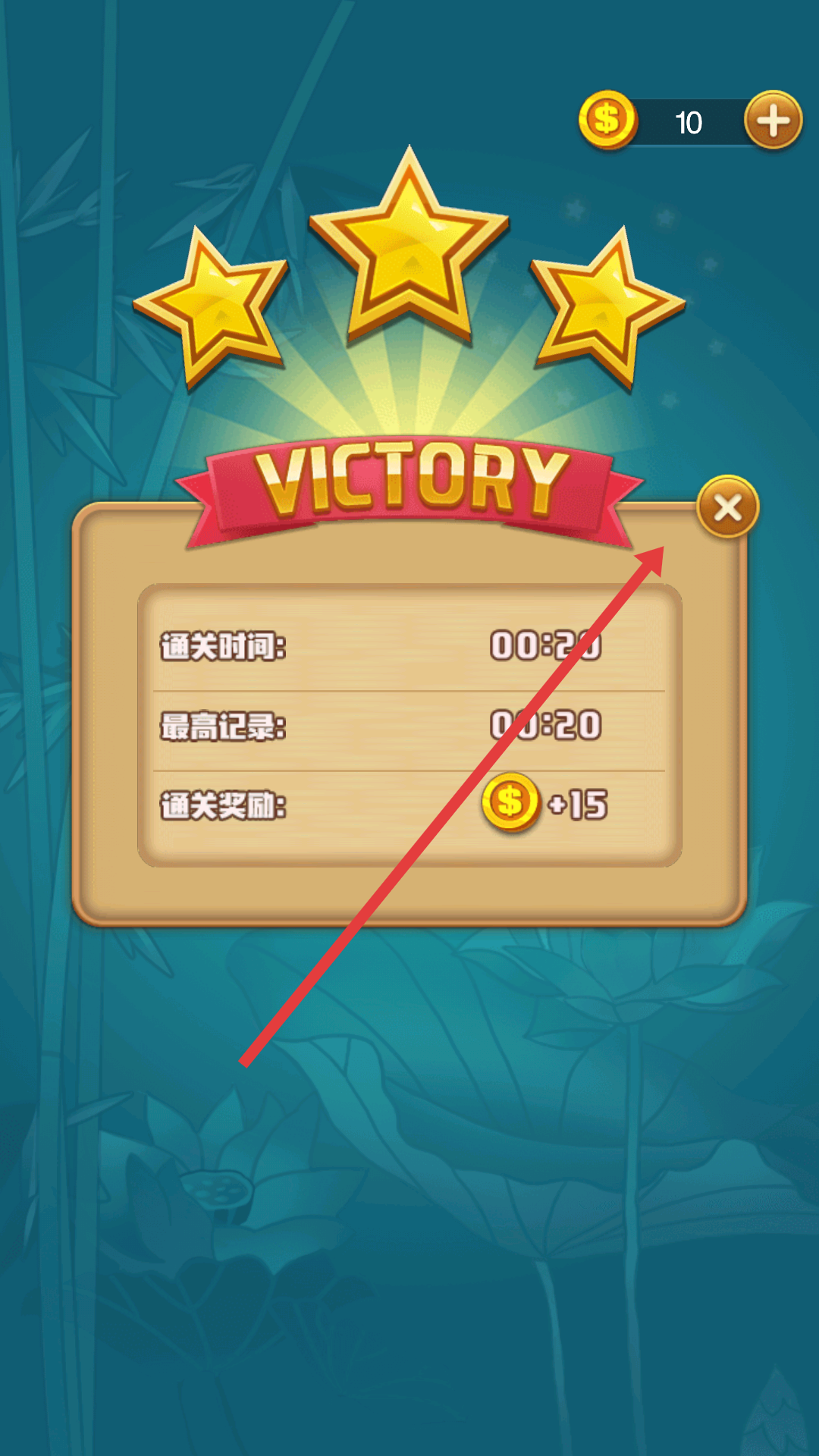 4、當成功消除所有能消除的麻將后,就會通關(guān),此時會顯示通關(guān)的相關(guān)信息,包括通關(guān)時間、最高記錄和通關(guān)獎勵等。