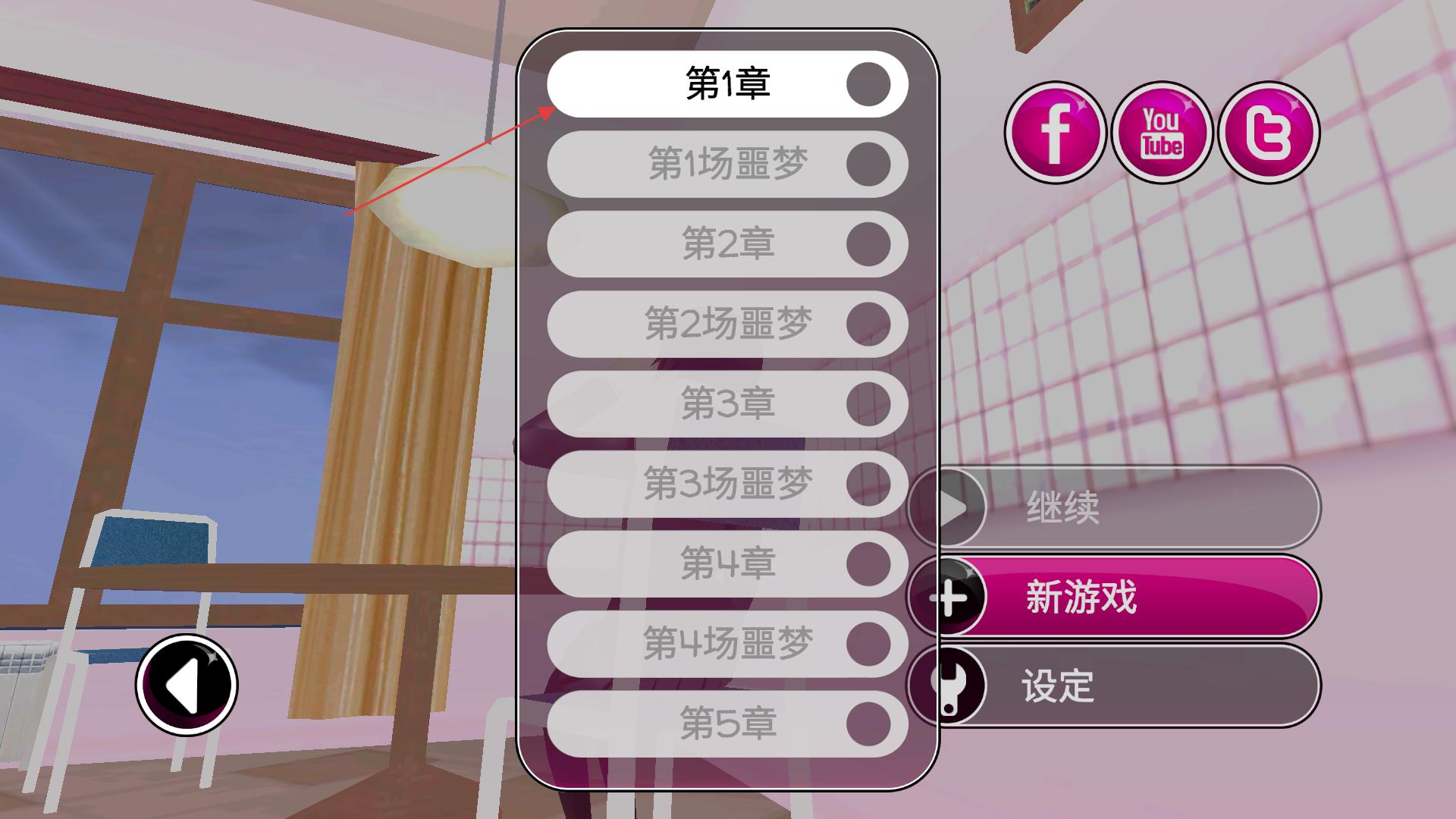 1、進(jìn)入游戲后,在章節(jié)選擇界面,可看到不同章節(jié)的選項(xiàng),點(diǎn)擊第1章,即可開啟游戲的最開始的劇情,進(jìn)入冒險(xiǎn)。