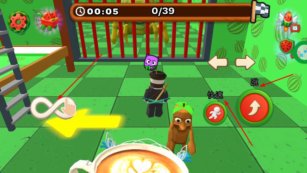 2、選好模式后可以進(jìn)入關(guān)卡熟悉操作,用搖桿控制移動(dòng),遇障礙點(diǎn)快速,需要跨越時(shí)點(diǎn)跳,靈活配合完成任務(wù)。