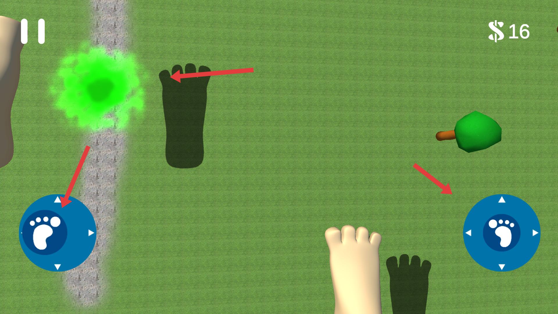3、游戲里通過操控左右兩側(cè)帶腳印的藍色按鈕,來控制巨人的移動,到場景中探索前進。