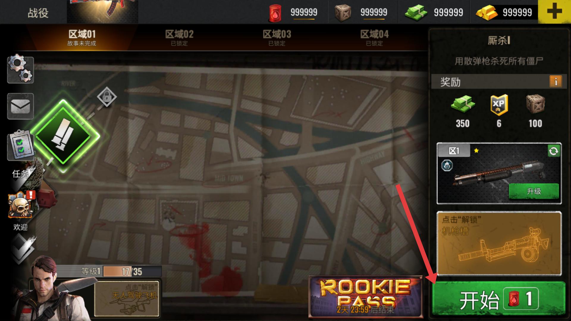 1、進入游戲戰(zhàn)役界面,選擇可參與的區(qū)域任務,點擊右下角綠色開始按鈕,消耗1點體力即可進入戰(zhàn)斗。