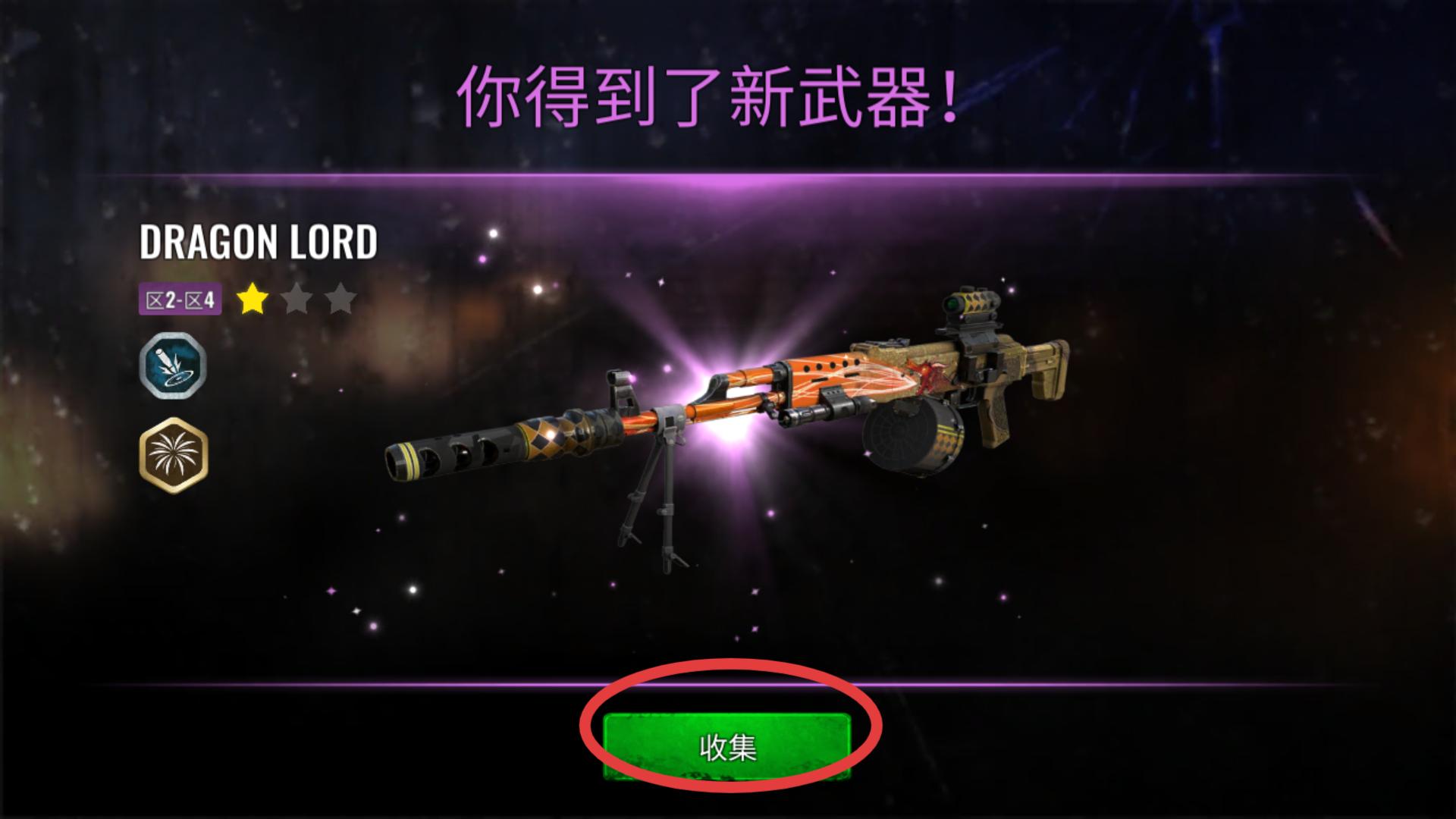 4、成功解鎖新武器后,會(huì)顯示你得到了新武器的提示,此時(shí)點(diǎn)擊收集按鈕,即可將新武器收入囊中,用于后續(xù)戰(zhàn)斗。