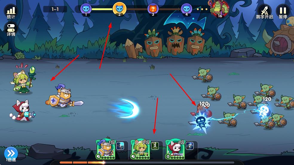 2、戰(zhàn)斗時關(guān)注角色等級與敵人波次,派高等級角色抗傷,利用技能清怪,推進關(guān)卡,注意小怪攻擊。